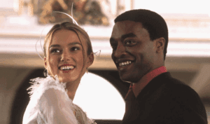 The subtle yet impactful presence of British-Nigerian actor Chiwetel Ejiofor (as Peter) warrants attention. Ejiofor, an actor of immense talent who later commanded the screen in 12 Years a Slave (2013), is regrettably underutilized. As Peter, the groom to Juliet’s bride (Keira Knightley) he is an amiable, handsome black presence in an otherwise starkly white cast. Yet, his role is purely functional: a handsome prop used to facilitate one of the film’s most enduringly popular, yet complex, and by today’s standards, cringe-worthy storylines; the fact that Peter’s best man and best friend the white Mark (Andrew Lincoln), is secretly, and obsessively in love with Juliet. While the film treats Mark’s “crush” as rather harmless, from a critical, contemporary perspective, his actions are less romantic and more stalkerish as displayed in his invasive clandestine filming of Juliet during her wedding ceremony to Peter.