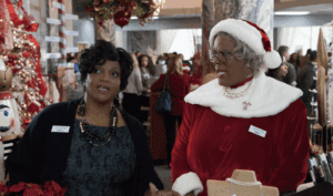 The narrative follows Madea (Tyler Perry) as she is persuaded to visit her niece, Lacey (Tika Sumpter), a schoolteacher in the fictional, oddly named, backwoods town of “Bucktussle,” Alabama. The narrative tension stems from Lacey’s secret cross-racial marriage to a white man named Conner (Chad Michael Murray), which she has hidden from her traditional mother, Eileen (Anna Maria Horsford). While certainly a comedy, the film also provides commentary on serious and sensitive issues like racism, materialism, and complex community dynamics, all while advocating for the true meaning of Christmas. As usual, Perry’s Madea is a vessel of blunt and at time unwanted truth telling and “tough love,” absent polite niceties.
