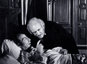 The black-and-white cinematography lends a beautifully stark, gothic elegance to Victorian London, perfectly capturing the frigid atmosphere of Scrooge’s world and initial outlook, a world he has reduced solely to commerce and isolation. Bob Cratchit’s (Mervyn Johns) perpetual optimism, sentimentality, and grace make for a stunning encounter, when the predictably miserable Scrooge beats him to work the day after Christmas not to chastise him, but to order him to buy more coal to warm up the office and to inform him about his raise and Scrooge’s intention to help him raise his young family; an act which leads to the restored health of Tiny Tim (Glyn Dearman). The film’s aesthetic is rich without being sentimental, an atmospheric foundation essential for the moral and spiritual transformation that follows.