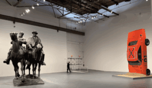 The Museum of Contemporary Art, Los Angeles (MOCA) and The Brick (a non-profit visual art space) have teamed up for an important exhibition which takes up where the movement to remove and decommission Confederate, Civil War monuments left off. The Monuments exhibition (October 23rd, 2025 – May 3rd, 2026) reflects on the histories that led to the erection of the monuments as well as the movement to reconsider, remove, and reinscribe them and the cultural and political landscapes in which they were erected (and that they marked and shaped), with new meanings. The curatorial team which included Hamza Walker (Director of The Brick), Bennett Simpson (Senior Curator at MOCA), and Kara Walker (artist) considered the ways public monuments have shaped national and racial identity, historical memory, and the current political terrain. The show was inspired in part by the decommissioning of some two hundred monuments that came in the wake of the racially-motivated mass shooting at the Mother Emanuel AME Church in Charleston, South Carolina (2015), Bree Newsome’s courageous removal of the Confederate flag from the South Carolina statehouse (2015), and the “Unite the Right” white nationalist rally in Charlottesville, Virginia (2017). To understand the profound African American and Black Diasporic suffering around the flag, one must acknowledge that it was created by a group of white politicians who represented states that sought to separate themselves (secede from the nation) and fashion a new country in order to preserve and expand Transatlantic Slavery into new territories. Monuments is a call for a rigorous interrogation of the distant and recent racial and racist past and for critical engagement with the systematic project of erasing, sanitizing or elevating the histories of white supremacy that produced such monuments in the first place.