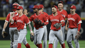 Now that the World Baseball Classic is over, we would like to salute team Canada who made it through to the quarter finals for the first time ever, racking up wins over Colombia (8-2), Cuba (7-2), and Puerto Rico (3-2)! Sadly, they fell to team USA in the quarter finals 5-3. But we were also rooting for the team that was clearly the best in the tournament. No, not Venezuela, but the team who beat them 7-5 in pool play, The Dominican Republic. How great was team DR? Well, after beating Israel 10 to 1, Nicaragua 12 to 3, The Netherlands 12 to 1, and Venezuela 7 to 5, they were so relentless against South Korea in the quarter finals that the mercy rule kicked in the bottom of the seventh inning after Austin Wells smashed a three-run walk-off home run! The final score was 10 to 0. That it was Venezuela (second in the pool with DR) that went on to win the classic by defeating the USA 3 to 2 was a gut punch for DR fans.