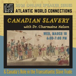 Book NowAtlantic Black Box presents the Atlantic World Connections series features scholars, memory keepers, and community historians doing groundbreaking work to surface suppressed stories of oppression and resistance in the Dawnland…. which includes the area known as the Canadian Maritimes.